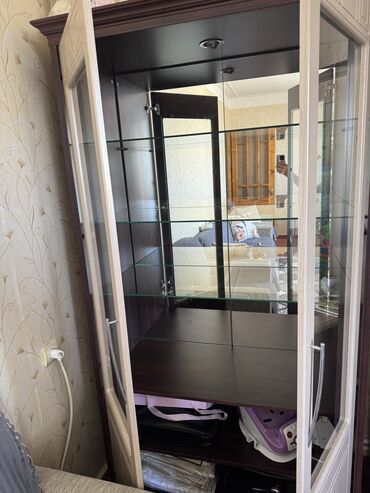 Türk sənətkarları tərəfindən zövqlə yığılmış Klassik üslubda vitrindən və TV altlığından ibarət qonaq otağı dəsti. - Material: təbii ağacdan və MDF şpondan hazırlanmış, qəhvəyi rəngli, relyefli de...