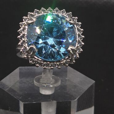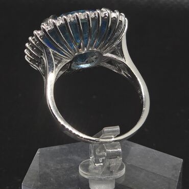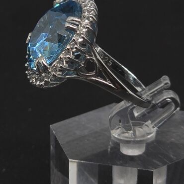 Tebii 12 karat mavi topaz daşı ilə bəzədilmiş 925 prob gümüş üzük. Üzüyün dairəvi forması və ətrafındakı xırda daşlar ona zərif görünüş verir. Zərif və dəbli aksessuar kimi istifadə üçün idealdır.