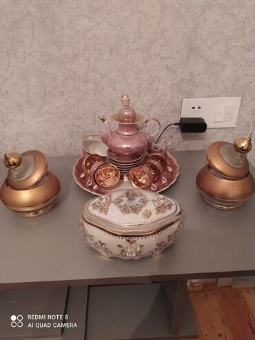 24 karat qızıl suyuna salınıb.2mərtəbədi.47 predmetdi.çayniy,kofeniy və obedniy.Ünvan:Sulutəpə.