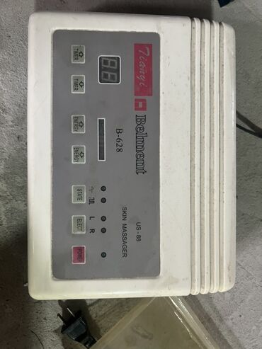 - Tianyi Belment B-628 US-88 Skin Massager – paneldə taymer (Timer), enerji səviyyəsi (Energy) və rejim göstəriciləri, L/R kanalları, “State”, “Elect” düymələri, rəqəmsal göstərici və “Power” düyməsi. Şəbəkə ilə işləyən aparat.