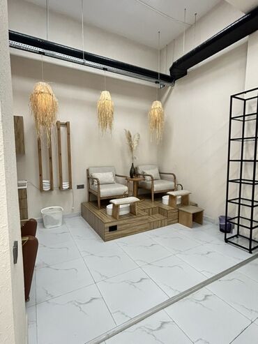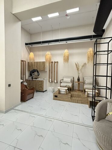 Geniş və işıqlı gözəllik salonu interyeri və avadanlıqları