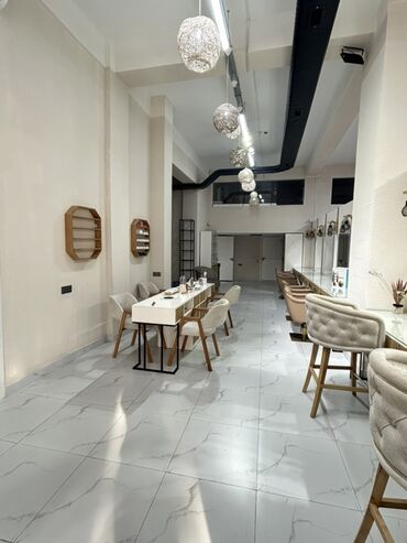 -Salon; ümumi zal + 4 kabinet + 2 zal + WC + resepcion + genis metbex