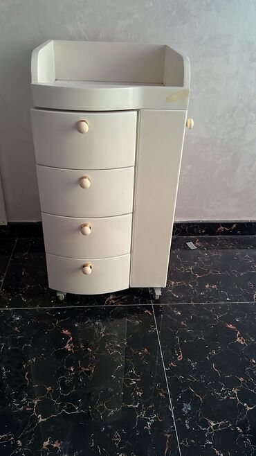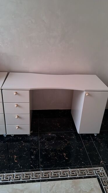 Gözəllik salonu üçün nəzərdə tutulmuş bu dəstə işıqlı makiyaj masası, təkərli qablar şkafı və saxlama rəfləri daxildir. Makiyaj masası güzgüsünün ətrafında daxili işıqlandırma mövcuddur. Dəstdəki d...