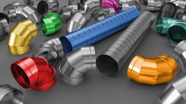 Peşəkar havalandırma xətləri yığmaq üçün müxtəlif ölçü və konfiqurasiyada spiral kanallar və fitinqlər. Rəngli toz boyalı və sinklənmiş metal variantları mövcuddur.