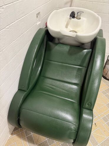 - Saç yuma bölməsi: yaşıl dəri örtüklü yuma kreslosu və keramik lavabo (qarışdırıcı kran, duş başlığı).