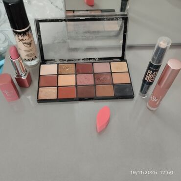 Makiyaj seti – 4 məhsul her biri originaldi nergiz shopdan alinib,reng uygun olmadigi ucun satilir cemi 2-3 defe istifade olunub
