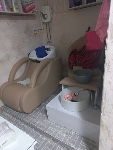 Məkan işləməyə hazır, alətlər və məhsullar üçün geniş səthlər, rahat müştəri qəbulu üçün oturacaq zonası mövcuddur.