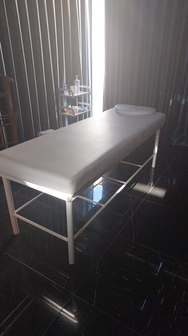- Metal karkaslı, ağ döşəməli masaj/estetik prosedur çarpayısı (yastıqla)