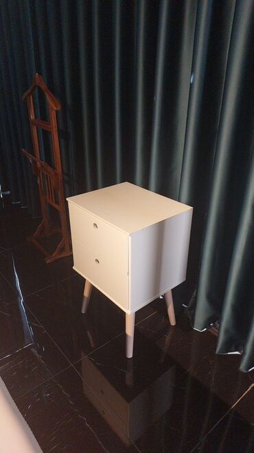 - Skandinaviya üslubunda 2 çekmecəli, konus ayaqlı komod/torşer yanı dolab