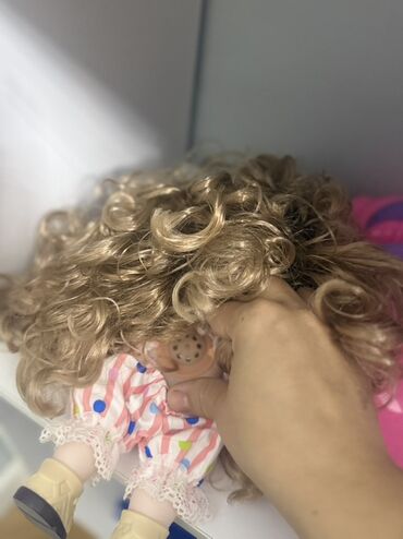 - Uzun, qıvırcıq sarı saçlar; saçda naxışlı lent aksesuarı