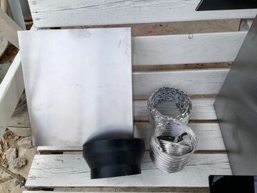 - Havalandırma çıxışı üçün komplekt: alüminium fleks boru, sıxaclar, konus adapter və metal örtük paneli şəkillərdə mövcuddur