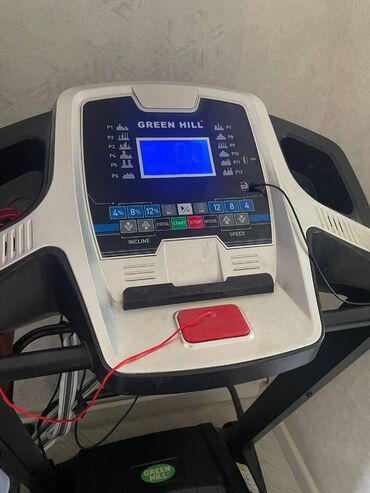 GREEN HILL qaçış trenajoru - Elektron konsol: böyük LCD ekran, sürət, məsafə, vaxt, kalori və nəbz göstəriciləri - İdarəetmə paneli: Start/Stop düymələri, sürət tənzimləmə +/-, proqram seçimləri, ...