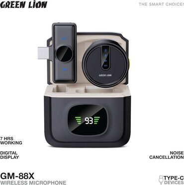 Green Lion GM-88X simsiz mikrofon dəsti, yüksək keyfiyyətli səs yazısı üçün ideal bir seçimdir. Bu dəstə səs tənzimləmə və səs-küyün azaldılması funksiyaları ilə təchiz edilmiş mikrofon və şarj qutusu daxildir. 7 saata qədər işləmə müddəti və rəqəmsal displey batareya səviyyəsini rahatlıqla izləməyə imkan verir. Type-C cihazları ilə uyğundur.
