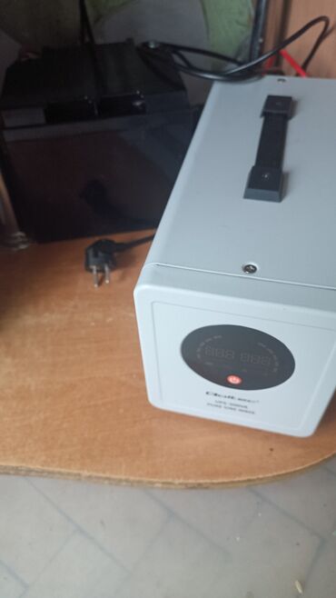 - Rəqəmsal göstəricili masaüstü gərginlik tənzimləyicisi (ön paneldə LED displey və açma/söndürmə düyməsi).