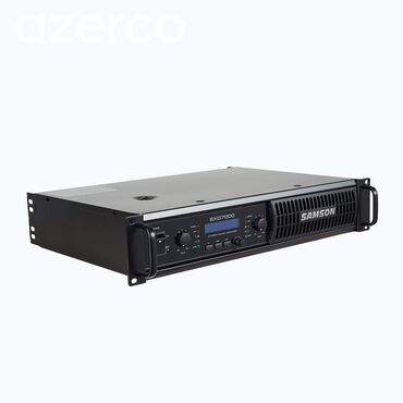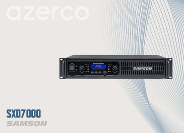 Səs gücləndirici Qara rəngdə olan Samson SXD7000 gücləndiricisi. Bu, səs sisteminin gücünü artırmaq üçün nəzərdə tutulmuş etibarlı bir cihazdır. Ön paneldə idarəetmə düymələri və parametrləri tənzimləmək üçün displey mövcuddur. Musiqi studiyaları, konsertlər və ya tədbirlər üçün uyğundur.