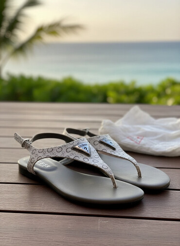 Rəngli dəri fakturalı, qızılı zəncirli çiyin çantası və uyğun açıq, şəffaf kəmərli, daş bəzəkli topuqlu terlik dəsti. - Çanta: göy qurşağı tonlarında krokodil naxışlı material, ön hissədə qızılı l...