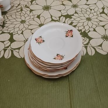 - Fincan və boşqabların eyni kolleksiya dizaynı ilə komplekt