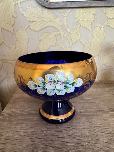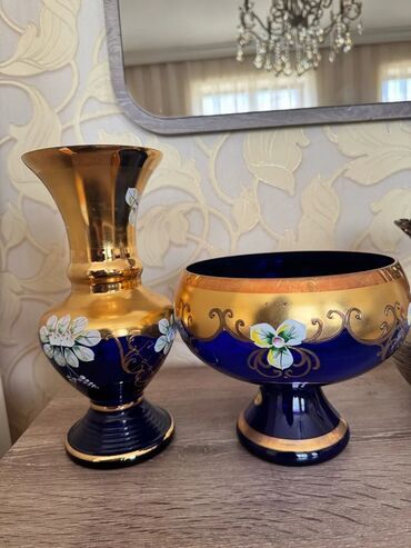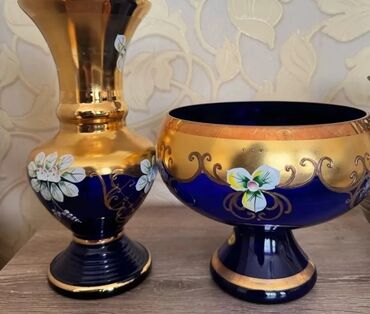 ÇexGül qabı və vaza. Gül qabının hündürlüyü 27 sm, vazanın isə 17 sm-dir. Meyvə qabı əl işi olaraq hazırlanmış orijinal Çexiya məhsuludur. Hər ikisi orijinal və qədimdir, cehizlik olaraq saxlanılıb, heç istifadə olunmayıb. Yalnız ciddi alıcılar müraciət etsin.