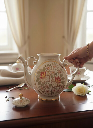 Gözəl naxışlı, vitrin və gündəlik çay süfrələri üçün estetik porcelan çaydan. Xinayaxdilarda ve ya gundelik olaraq istifade etmek ucun dem cayniki. Hec istifade olunmayib. Qedim zamana mexsusdur. Originaldir.