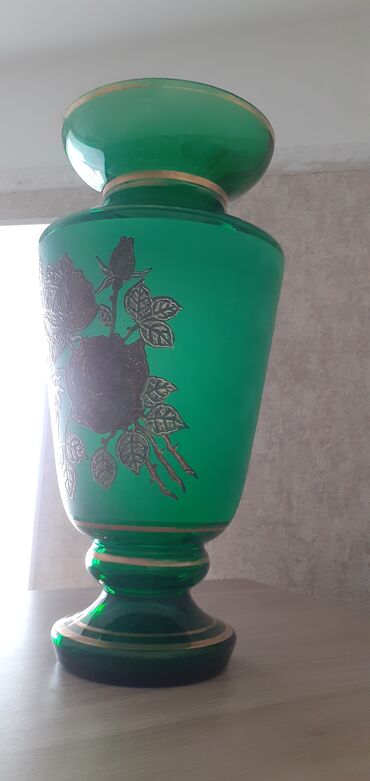 Antik kolleksiya seti – dekorativ və çay mədəniyyəti əşyaları - Cloisonné üslubunda dekorativ vaza: əl işi emal naxışlar, parlaq mavi fon üzərində çoxrəngli çiçək və yarpaq motivləri, qızılı tonlu...
