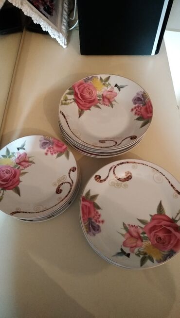 Porselen boşqab – əl işi çiçək naxışlı - Material: incə porselen. - Dizayn: üz tərəfində əl ilə çəkilmiş güllü kompozisiya – çəhrayı və bənövşəyi qızılgüllər, yaşıl yarpaqlar və mavi çiçəklər - H...