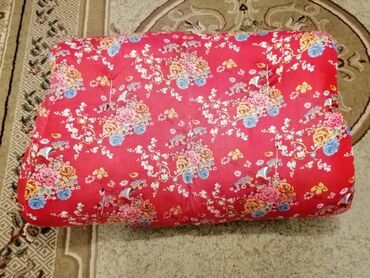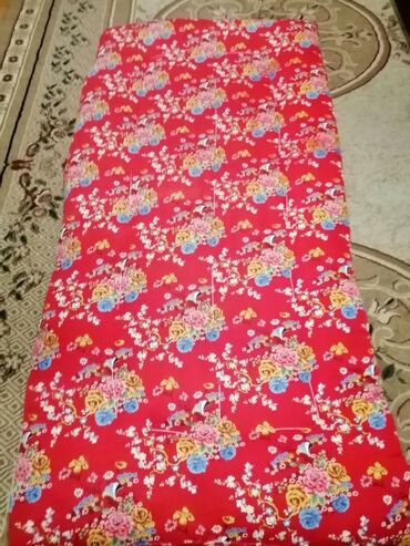 Qırmızı-qızılı naxışlı yun döşək/yorğan - Ölçü təxmini: orta ölçülü, dikdörtbucaq forma - İkiüzlü: bir tərəfi qırmızı parça, digər tərəfi qırmızı fon üzərində qızılı parıltılı dekorativ naxışlarl...
