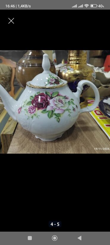 Şəkildə ölçüləri var qulpu və ağız hissəsi qırılıb kleylənib,Şəkildədə gösterilir. keçmişin çaydanıdı, istifadə edilmeyib suvener kimi qalmışdı. sovetin çaydanıdı qədimidir. Litrini dəqiq bilmirəm....