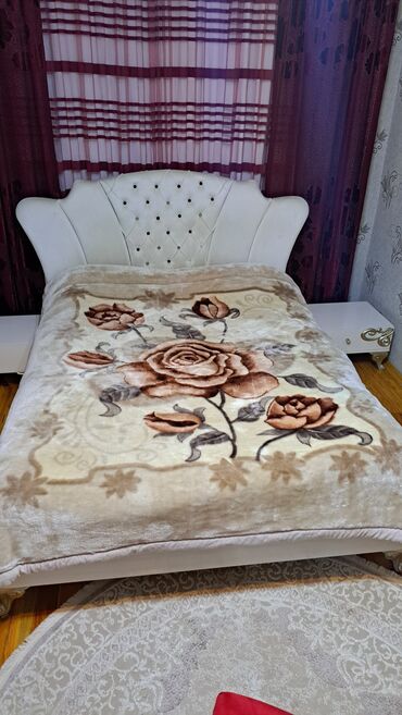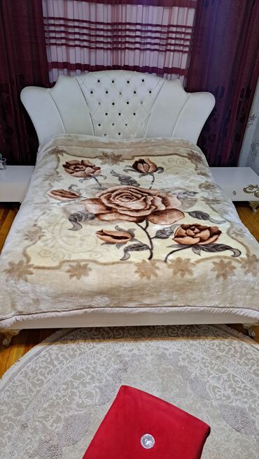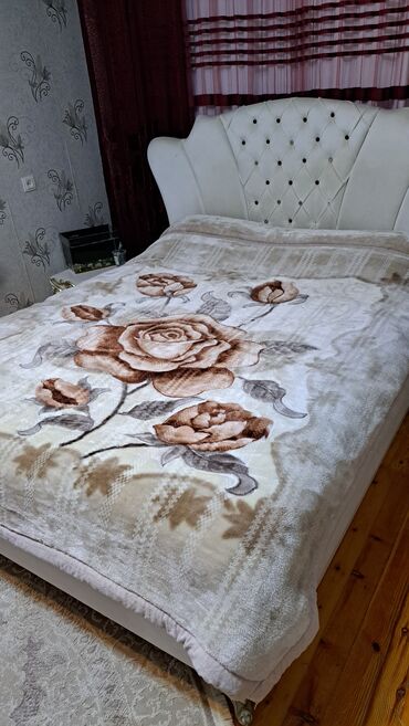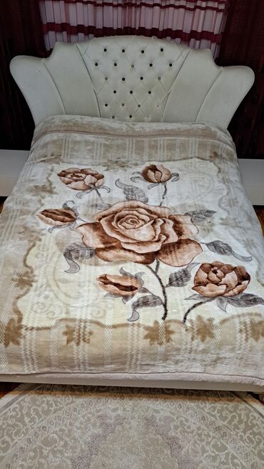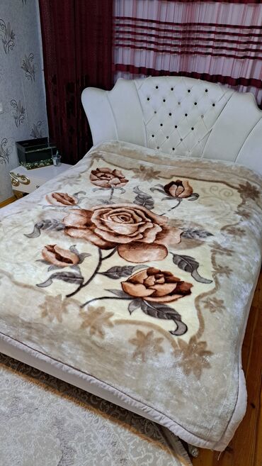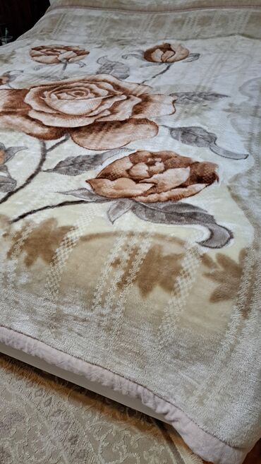 İsti və yumşaq örtük (plyonka/yorğan tipli). - Material: qalın, tüklü, yumşaq sintetik parça (mohair/plüş effektli). - Dizayn: iri çiçək naxışları və kənarlarda bəzək haşiyəsi. - Rənglər: iki üzdə...