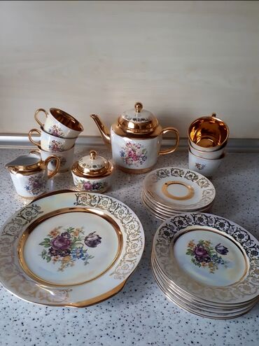 - Klassik üslubda, çiçək ornamentli və qızılı haşiyəli porselen dizayn
