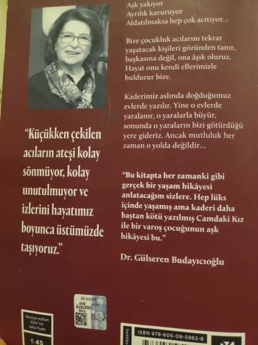 Gülseren Budayıcıoğlu tərəfindən yazılmış "Camdakı Kız" kitabı, real həyat hekayələrinə əsaslanan bir romandır. Kitabın üz qabığında çiçəklərlə bəzədilmiş bir qadın şəkli yer alır. Bu roman, lüks həyat tərzi ilə kasıb bir uşağın həyatını müqayisə edərək, taleyin insan həyatına təsirini araşdırır. Kitabın arxa səhifəsində müəllifdən sitatlar və əsərin məzmunu haqqında qısa məlumatlar mövcuddur. "Camdakı Kız" oxuculara duyğusal və düşündürücü bir oxu təcrübəsi təqdim edir.