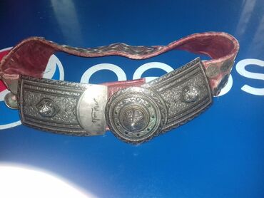 Qədimi gümüş kəmər satılır Antikvardı 2əsr yaşı var - Qara parça əsaslı, boyunca metal nəbati və ulduz formalı aplikasiyalarla bəzədilib. - Uclarında iri, oyma naxışlı metal plaketlər və möhtəşəm...