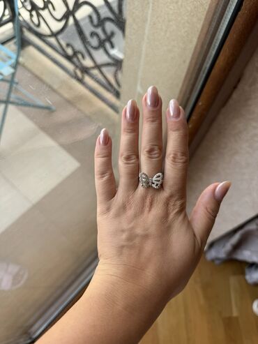 Gümüş rəngli daşlı üzük – “qəfəs/qurdelə” (kəpənək/qurdelə formasında) dizayn.