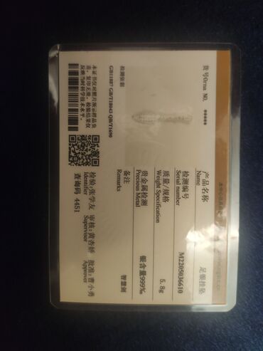 - Sertifikat: “Certificate of Precious Metal Test” kartı əlavə olunub (məlumatlar şəkillərdə).