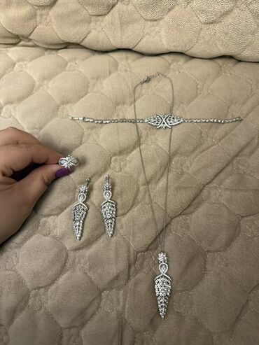 EndirimsizGümüş rəngli zərif bəzək dəsti