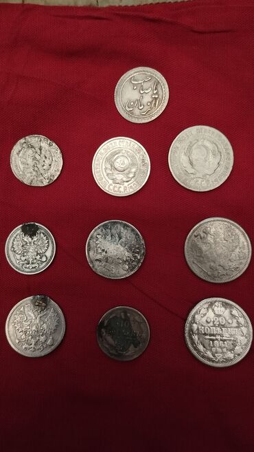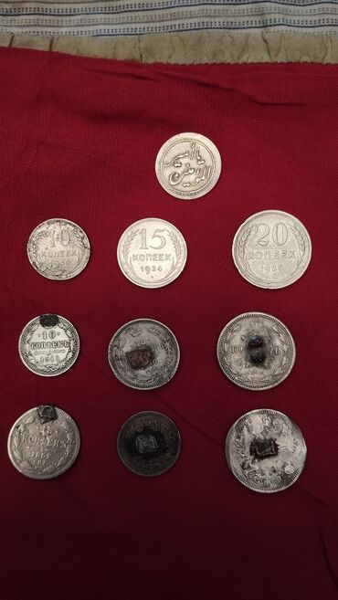Tarix və kolleksiya həvəskarları üçün müxtəlif dövrlərə aid gümüş tonlu xırda nominallı sikkə toplusu.