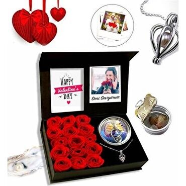🎁Gül dolu qutuda gümüş mirvari bouyunbağı. Üzərində sizin istədiyini şəkil və ya yazı hədiyyə