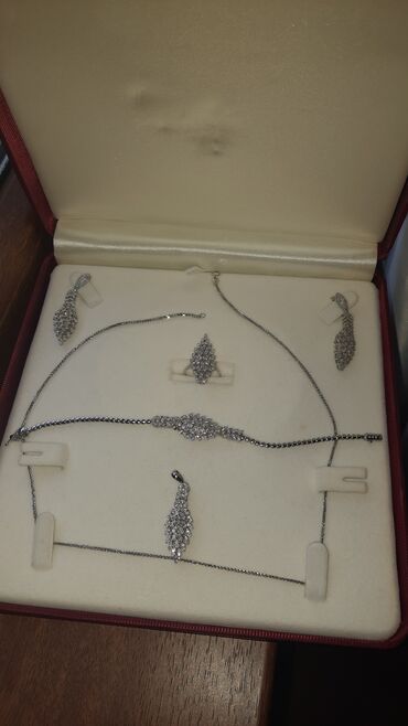 Yeni geldi 585əyyar Türkiyə isdehsalı Yeni model ağqızıl Kamplekt svarovisqi qaşlarla bezedilmişdir çəki 23.88qram. Gözəl görnüşdü və həcimli ağqızıl kamplektdi. Həm gündəliyə həmdə xeyir işlərdə r...