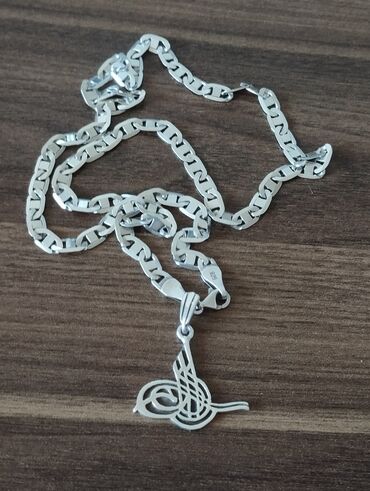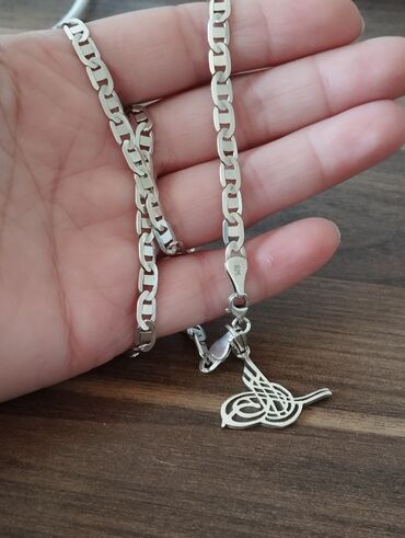 Gümüşü rəngli, düzbucaqlı formalı zəncirli boyunbağı. Boyunbağıda Osmanlı tuğrasına bənzər detallı medalyon var. Tuğra dizaynı boyunbağıya qədimi və zərif görünüş verir. Gündəlik istifadə üçün uyğundur.