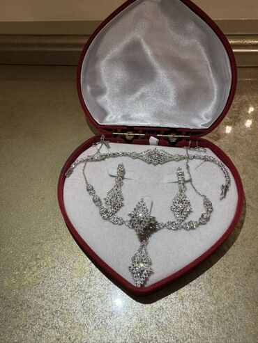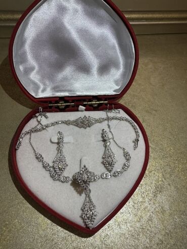Ağ qızıl 750 əyar, 32 qr brilyant qaşlı gəlinlik dəstidir. Yenidir alınandan 1 dəfə belə taxılmayıb. Cehizlik üçün alınıb. Bazar dəyərindən qat qat aşağı qoyulub qiymət. Anlayışı olan baxanda biləcəkdir. Ciddi şəxslərə cuzi endirim olunacaqdır.