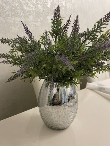 Digər materialGümüşü güzgü effektli şüşə vaza və dekorativ lavanda kompozisiyası