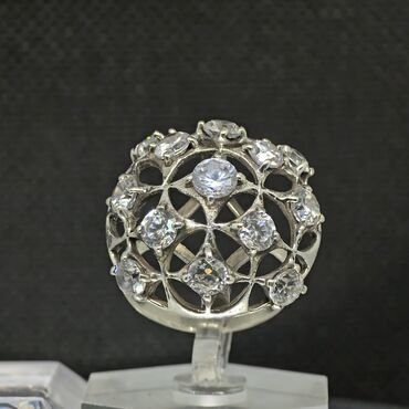 Uniseks – eksklüziv dizayn - Material: gümüş 925prob - Üst hissə: iri mərkəzi parlaq daş və onu çevrələyən çoxsaylı boyuk parlaq daşlar (brilliant kəsim effektli) - Dizayn: dairəvi başlıq üzərində...