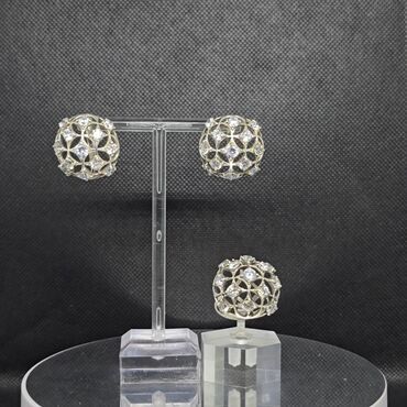 Gümüş rəngli zərgərlik dəsti – üzük və sırğalar - Dizayn: Sferik/yarımkürə formasında açıq işlikli (filigranvari) karkas. Hər hissə “çiçək” motivli qəfəs naxışı ilə hazırlanıb. - Bəzəklər: Karkası...