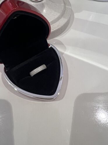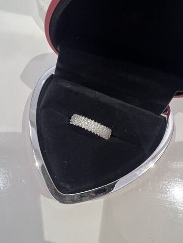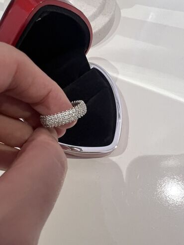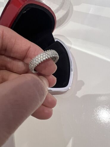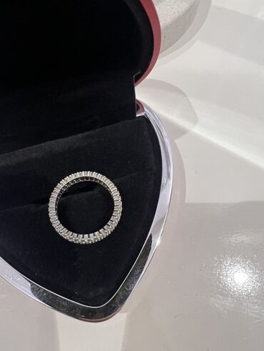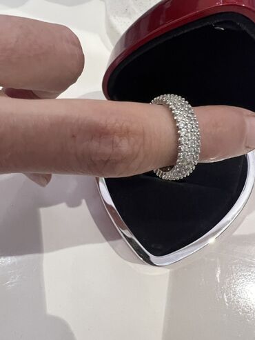 Gümüş rəngli zərif qadın üzüyü – tam dairə boyu parlaq daşlı 17 ölçü 925 ayar gümüş