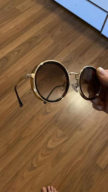 Retro üslubda gün eynəyi - Dairəvi linzalar: tünd qəhvəyi rəngdə, klassik “round” forma - Çərçivə: qızılı tonlarda metal, kənarları naxışlı bəzək halqası ilə - Körpü və məftillər: nazik metal körp...