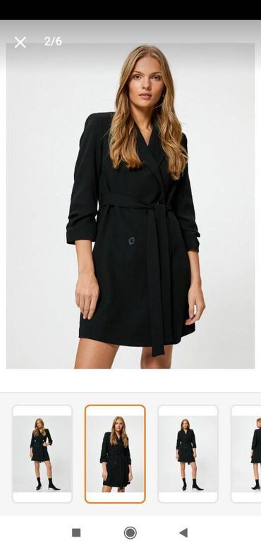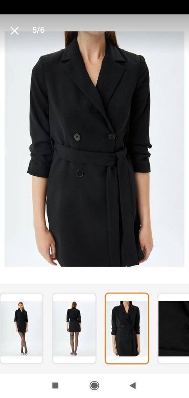 Qadın paltarı – narıncı/qırmızı tonlarda, dizdən bir qədər aşağı uzunluqda, qısaqol, kofta yaxalı model. Ön hissə boyu düyməlidir. Eyni rəngdə çıxarıla bilən kəmər və metal tokalı kəmər halqaları i...