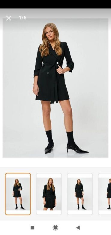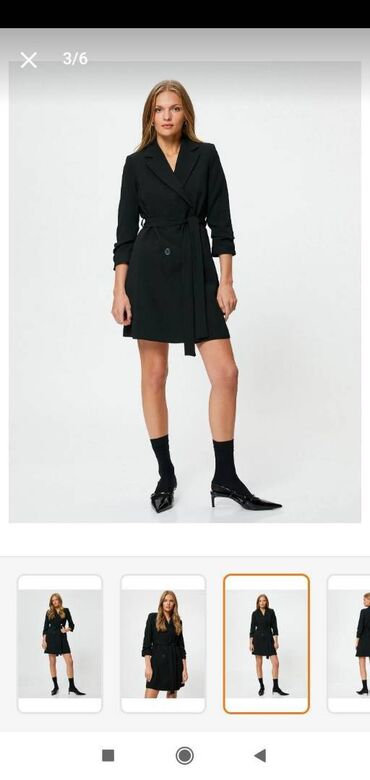 • Qadın paltarı - Rəng: qara - Model: düz kəsim, dizə yaxın uzunluq -