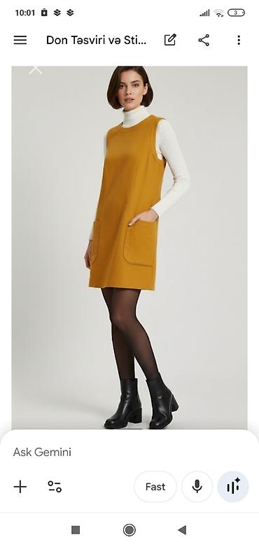 Oasis brendinin xardal-sarı rəngdə qadın donu