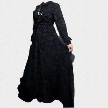 Qara rəngdə qadın donu, mərkəzində naxışlı panel yerləşir. Uzun
