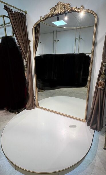 Geyim mağazaları və atelyelər üçün vitrin/qarşıdan-baxış guşəsi – podiumlu böyük güzgü komplekti