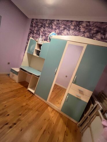 Geniş dolab, paltar və əşyalarınızı səliqəli şəkildə saxlamaq üçün ideal seçimdir. Dolabın mərkəzində güzgü quraşdırılıb. Dolab iki ədəd çekmeceye sahibdir.
